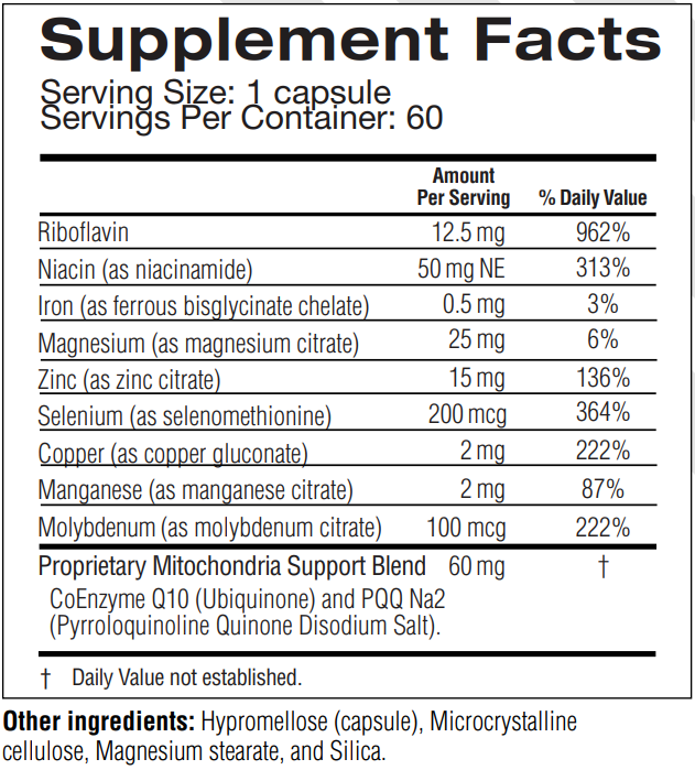 - Supports healthy mitochondria function*